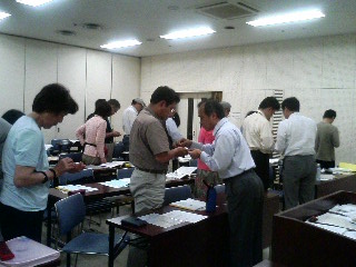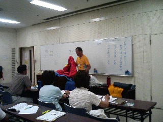ちゃんとわかったかな~? 写真は、T氏による説明とコンパスを使った講義。