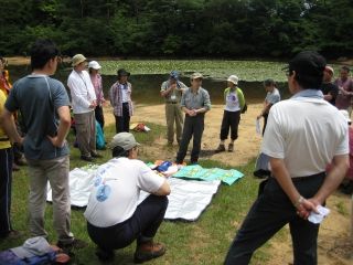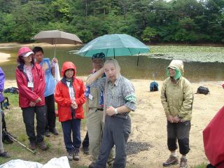 横ノ池到着。雨があがったので、今度はT氏による救急法の説明開始。